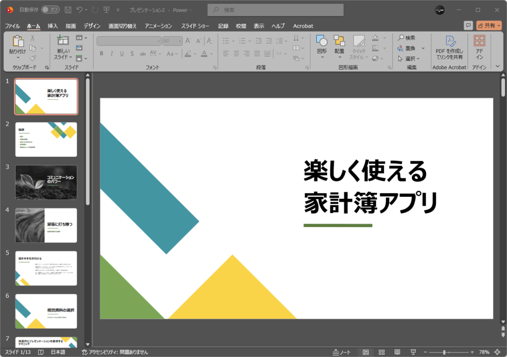 完成したアプリは PowerPointで提案形式にまとめて発表します。アイデアを形にし、相手に伝える力を身につけます。